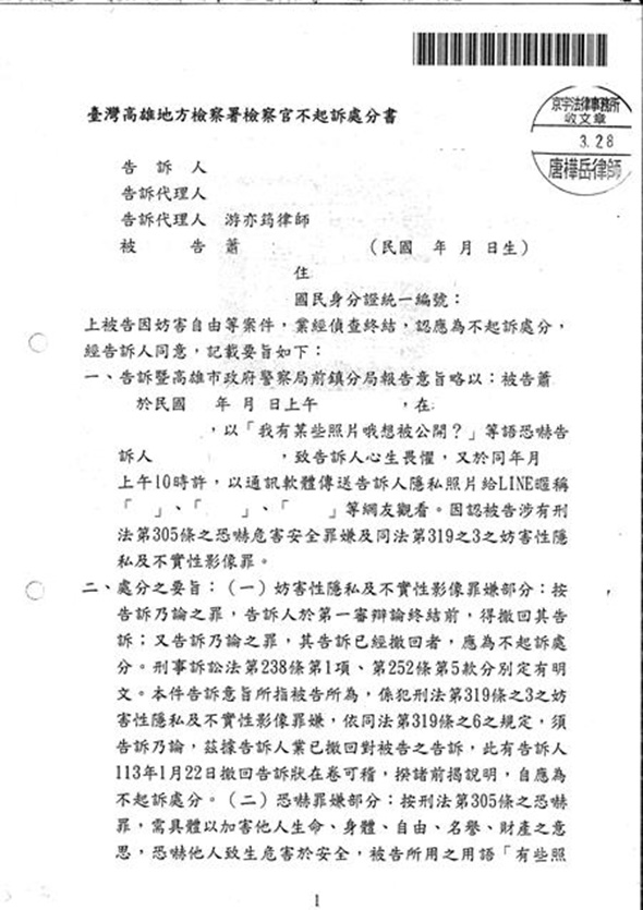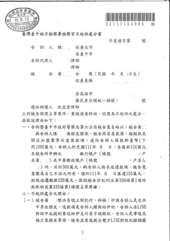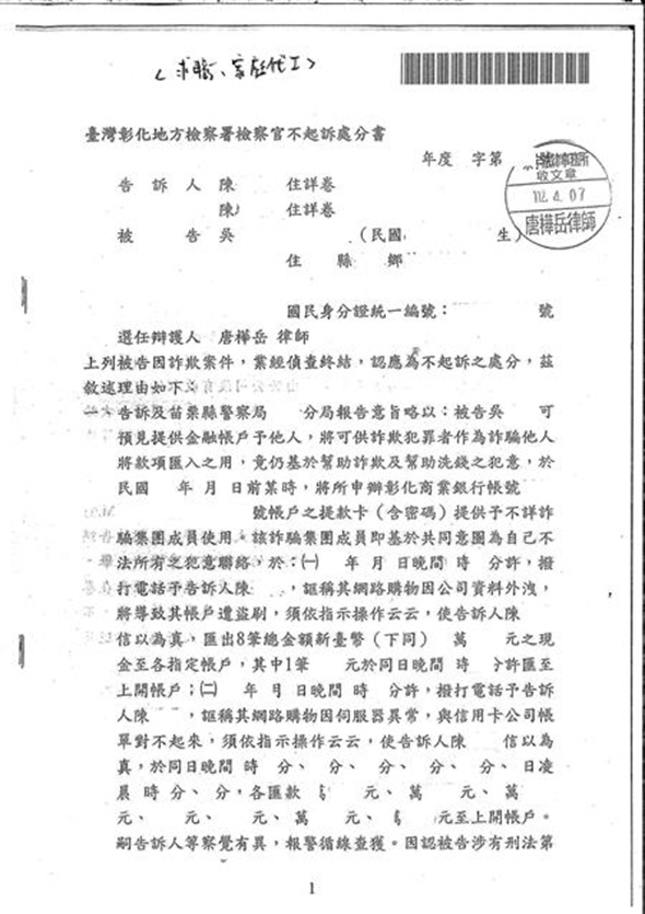 案件類型: 不拘 法律 會計 地政 次分類: 不拘 報稅 刑事案件 民事案件 家事案件 其他案件 不拘 洗錢防制法 妨害名譽 過失致死 偽造文書 妨害風化 警示帳戶 車手 妨害性自主 竊盜、恐嚇、搶奪 過失傷害 侵占案件 性騷擾防治法 毒品危害防制法 偽證罪 貪汙治罪條例 詐欺(被告) 肇事逃逸 妨害秘密 妨害農工商 賭博罪 妨害性隱私 殺人罪 刑事案件 誤信詐騙集團話術,協助多筆轉帳 成功爭取不起訴 當事人接到詐騙集團佯裝銀行高階主管電話,稱當事人誤成為某網站之高級會員,每年都會從當事人的帳戶扣繳年費,但只要依照其指示提供帳戶內所有款項提出即可解除。沒想到依照詐騙集團的指示後,事後才驚覺自己受騙且帳戶以遭警示,幸好找到「法律停看聽」的 陳律師,透過陳律師的專業答辯,成功說服檢察官替當事人爭取到不起訴。 刑事案件 求職租借帳戶遭控洗錢 成功爭取不起訴 當事人在臉書社團上找工作,貼文上留有詐騙集團的line好友訊息,待當事人加入後,對方向當事人稱公司需要提供帳戶給玩家匯款,若出借1個帳戶每個月可領3萬塊錢,當事人不疑有他將帳戶、網銀密碼提供出去,事後帳戶變成警示戶才驚覺自己是被詐騙集團利用。幸好找到「法律停看聽」的唐律師,在律師的協助下向檢察官說明當事人是在一定信任基礎且雙方有簽約的情況下,才會同意將名下帳戶提供出去,最終成功說服檢察官給予不起訴。 刑事案件 大學生網戀,慘遭詐騙集團利用成人頭戶 成功爭取無罪 當事人隻身在外地打工求學,某日在交友軟體上認識一網友,與網友平日都以親暱的稱呼相稱且對話多為曖昧內容,對方甚至拿出自己的身分證來取得當事人的信任,致當事人陷入錯誤交付自己的網銀帳號密碼給對方,事後發現自己的帳戶淪為詐騙集團利用成為人頭帳戶,幸好找到「法律停看聽」的紀律師,紀律師向法官證明當事人因社會經驗不足,才會身陷在愛情詐騙的泥淖中,成功替當事人爭取到無罪。 刑事案件 誤信詐騙手法交付三個金融帳戶,涉嫌無故交付帳戶罪 成功爭取無罪 年僅20歲的當事人在網路上參加免費占卜活動,為當事人提供感情占卜結果,嗣後再以感恩粉絲熱情參與占卜為由舉辦抽獎活動,並向當事人佯稱當事人中得10萬元頭獎,要求當事人提供匯款帳戶及密碼,以便將獎金匯入,沉浸在喜悅當中的當事人卻在幾日後收到傳票被告違反洗錢防制法,才知道占卜平台竟是詐騙集團佯裝,幸好找到「法律停看聽」的唐律師,透過唐律師的專業答辯,成功替當事人爭取到無罪。 刑事案件 違反毒品危害防治條例 成功爭取無罪 當事人受友人A所託開車載A去友人B家,卻沒想到本趟行程竟是為了交易毒品,讓當事人捲入了販賣毒品案件中,被檢察官起訴,指控他與朋友共同犯案。幸好當事人尋求到「法律停看聽」的唐律師協助,在律師仔細分析案件下,發現證人的證詞有前後矛盾之處。最終,憑藉著專業的法律知識及策略,唐律師成功為當事人爭取到無罪判決,脫離了這場不必要的法律困境。 刑事案件 家庭代工遭提告詐欺 成功爭取不起訴 當事人為改善家裡經濟,在臉書上找到家庭代工的兼職工作,後續對方稱需要當事人提供帳戶來預定及購買材料及避稅且會將節稅金回饋給當事人下,當事人信任詐騙集團的話術,認為是工作需要便將提款卡寄給對方。未料幾天後帳戶竟遭警示,才將驚覺自己遭詐騙集團利用,幸好找到「法律停看聽」的唐律師,透過律師向檢察官證明當事人因社會經驗不足,陷入錯誤遭詐騙集團所騙,成功替當事人爭取到不起訴。 刑事案件 業務侵占 成功爭取無罪 二位當事人分別擔任社區管委會的主任委員及財務委員,未料事後竟被其他住戶以帳務不清為由提告業務侵占,幸好當事人找到「法律停看聽」的游律師,律師在逐一釐清所有財報金流後,成功向法官證明當事人並無侵占管理費,成功替當事人爭取無罪。 刑事案件 詐欺案件 同意給予緩起訴 當事人一時失慮將帳戶交付給不詳之人使用,被詐騙集團利用成為人頭帳戶,意識到自己犯下錯誤後找到「法律停看聽」的紀律師,透過紀律師的專業答辯及與受害者積極協調,讓當事人與受害者順利達成和解,成功替當事人爭取到緩起訴。 刑事案件 涉嫌虛擬貨幣洗錢案 成功爭取不起訴 當事人在網路上看到詐騙集團佯裝公司的求職貼文,在加入對方好友後,對方稱要提供帳戶讓幣托公司使用,並幫忙完成入金提領工作後會給付佣金當作薪水,當事人便將存摺封面及身份證以拍照方式提供給對方使用。未料幾日後帳戶竟遭警示,當事人才驚覺自己遭詐騙集團利用。手足無措之下當事人找到「法律停看聽」的唐律師,透過律師向檢察官證明當事人是急於尋找工作,心急之下的判斷易受到影響而陷入錯誤,成功替當事人爭取到不起訴。 刑事案件 處理配偶後事,竟遭其他繼承人認為侵佔遺產 成功爭取不起訴 當事人的配偶過世,過世前有將自己的提款卡交給當事人,過世後當事人將帳戶裡的款項拿來替配偶辦後事及遺產稅等等相關規費,竟遭配偶的弟弟提告侵占,幸好當事人找到「法律停看聽」的游律師,游律師成功向檢察官證明當事人並無侵占遺產意圖,替當事人爭取到不起訴。 刑事案件 學生打工賺生活費,竟遭被告詐欺 成功爭取不起訴 出社會不久的當事人在臉書上找家庭代工,對方稱因為要購買材料卡需要當事人的金融